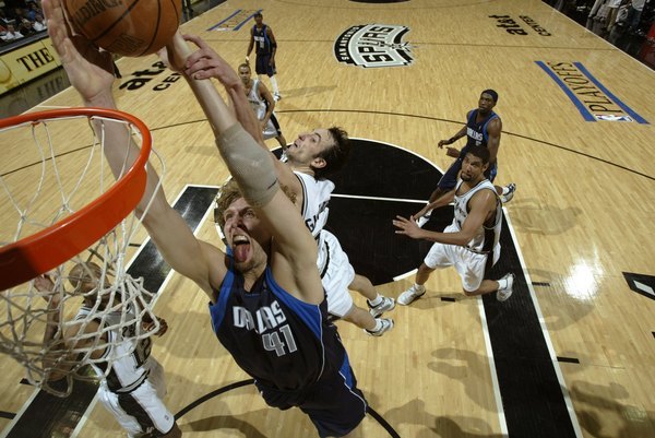 西區準決賽對上同樣來自德州的勁旅+可敬的對手馬刺隊,Finley剛轉過去就又見面啦。該系列,Diop努力地防守叮噹肯(Tim Duncan)或許是關鍵之ㄧ。另一個關鍵是Dirk在第七戰讓比賽延續到OT的三分打