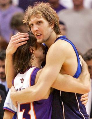 西區決賽與哥倆好Nasty (Nash)碰頭,昔日的鐵三角在今年季後賽用另一種方式相聚。Game 5 Dirk砍了個人季後賽新高的50分,最終4:2勝出 (對了,Nash到太陽後便連拿兩年MVP)