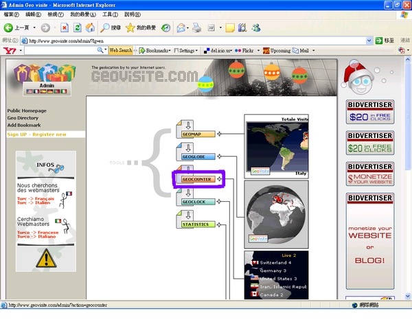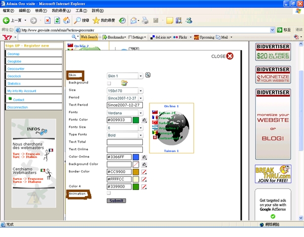 由於Geoncouter可動態地顯示國旗,線上人數,加上可選擇背景有個轉動的地球,我覺得很有趣,就試玩看看。